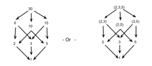 The hierarchy is seen – at the bottom two rows are the prime numbers, the third row has two factors and the top number has three.